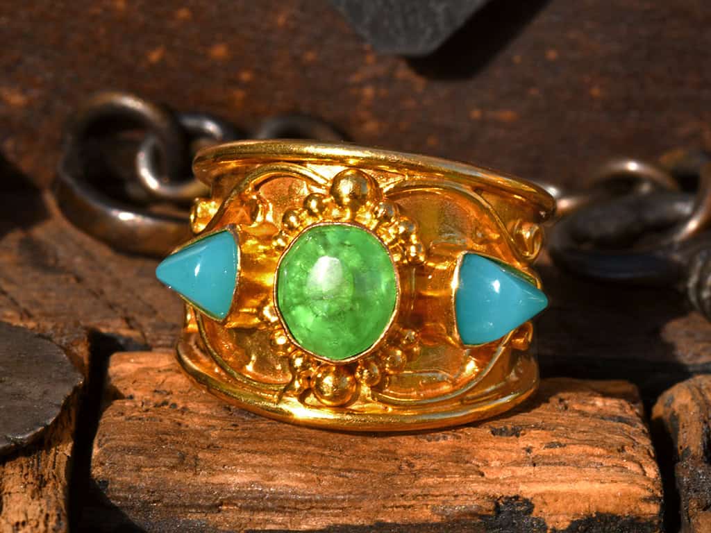 Tsavorite & Gem Silica Gold Ring